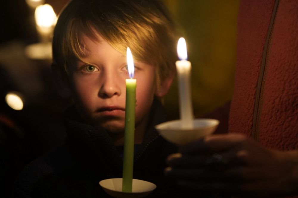 1月27日,一名男孩在美国加利福尼亚州半月湾市举行的守夜活动中哀悼枪击事件遇难者。新华社记者吴晓凌摄