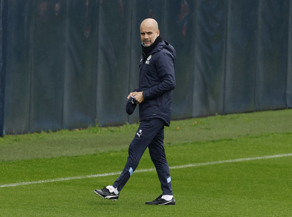 5月8日,曼城队教练瓜迪奥拉在训练中。当日,曼城队进行赛前训练,备战9日与皇马的欧冠联赛半决赛首回合比赛。新华社/路透